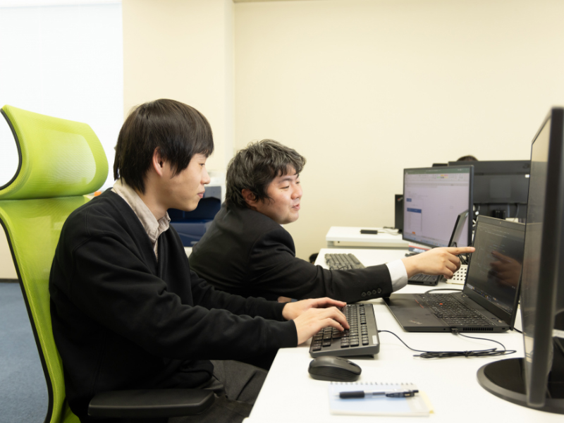 OJTでは、専任の指導者がつき、実務ができるように細かく指導を行います。専任の指導者は、部門の責任者と連携しながら計画的にOJTを進めており、新人のスムーズな業務習得と成長をサポートします。